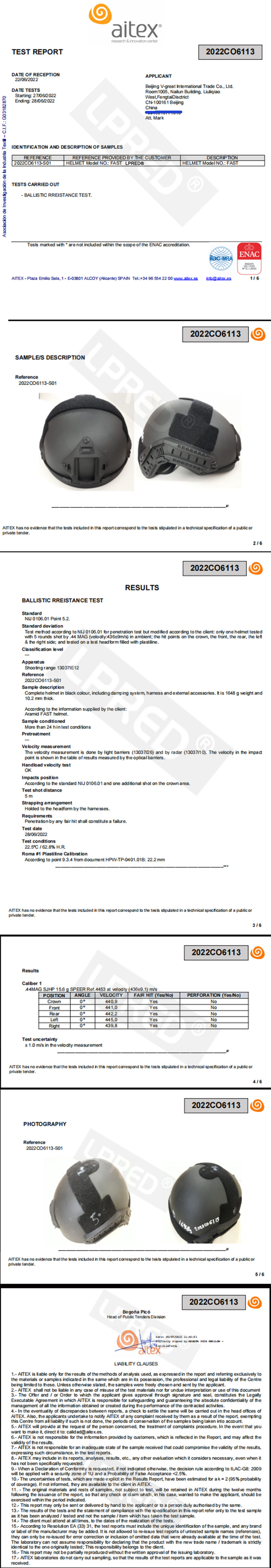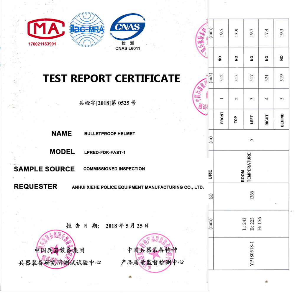 Стандарт: NIJ IIIA (Примітка: Наші шоломи мають балістичний рейтинг IIIA.44, що вище, ніж у 9 мм пістолета IIIA).