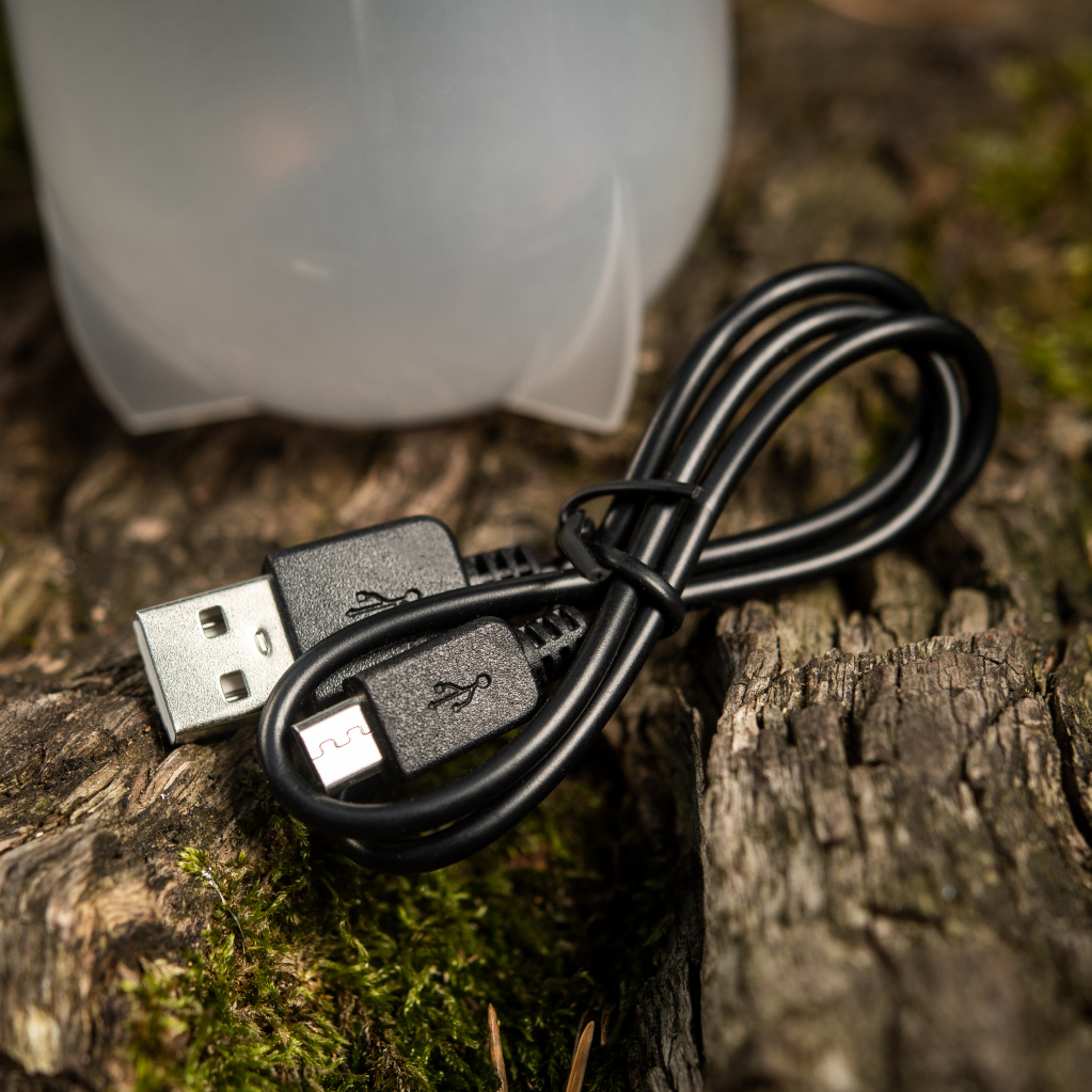 Ліхтар заряджається за допомогою USB кабелю, який йде в комплекті.