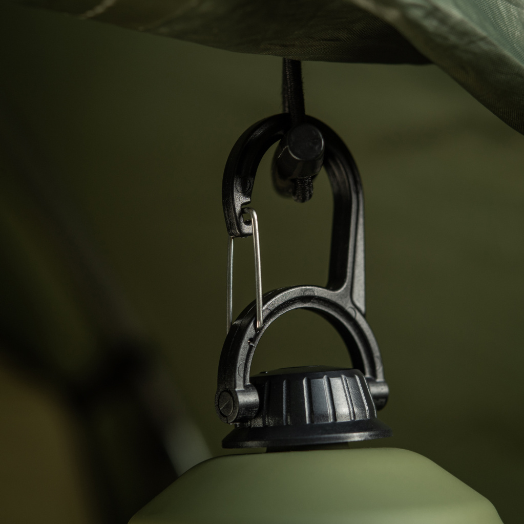 Купол захисного кольору (олива) оснащений карабіном. Зручне кріплення дає можливість підвісити ліхтарик і використовувати його в якості стаціонарного джерела освітлення.
